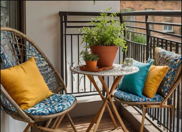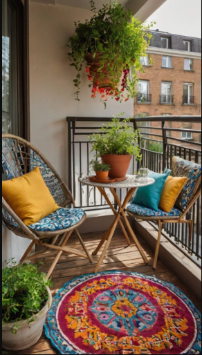 One of the simplest and most effective ways to liven up your apartment patio is by incorporating plants. If space is limited, use containers in different shapes and sizes to create a layered and dynamic display. Mix and match a variety of plants—such as herbs, flowers, and small trees—to add color, fragrance, and texture. Herbs like basil, mint, and rosemary are perfect choices since they look beautiful, smell amazing, and can be used in your cooking.
