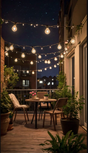 String lights are an easy and affordable way to create a warm, inviting atmosphere on your apartment patio. Drape them along railings, around your seating area, or overhead to add a soft, enchanting glow. For a low-maintenance and eco-friendly option, choose solar-powered string lights that automatically turn on at dusk.
