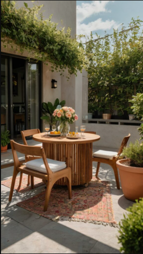 If space allows, add a dining table to your patio to enjoy meals in the open air. Choose a table that fits comfortably within your space and is made from weather-resistant materials such as metal, teak, or rattan. Pair it with cozy seating and a decorative tablecloth to make the area feel warm and inviting.