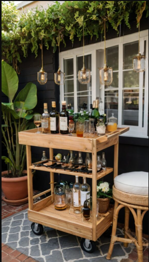 For a more relaxed and social vibe, consider creating a small bar area. A sleek bar cart or compact bar table can add both functionality and style to your patio. Stock it with essentials like glasses, a cooler, and your favorite beverages to create the perfect spot for outdoor entertaining.