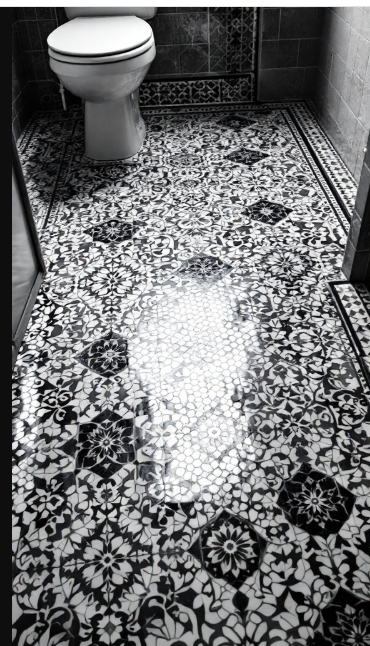 Monochrome tiles have the power to turn a bathroom into a refined, stylish retreat. The timeless black-and-white palette creates a chic atmosphere that never goes out of style. In this design, the intricate tile patterns immediately draw attention, their detailed designs playing with light and shadow to add depth and visual interest. The sharp contrast not only highlights the beauty of the tiles but also makes the space feel brighter and more open.