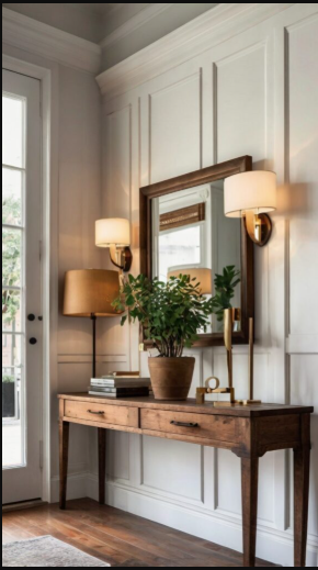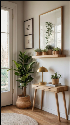 Mirrors are a smart design trick for making a small entryway feel more spacious and bright. By reflecting light, they create the illusion of a larger area while adding a touch of elegance. They’re also practical—perfect for a quick look before you head out the door. Whether you opt for a full-length mirror or a smaller decorative piece, mirrors enhance both style and functionality. Plus, they’re an easy way to bring light and openness to a dark or narrow hallway.