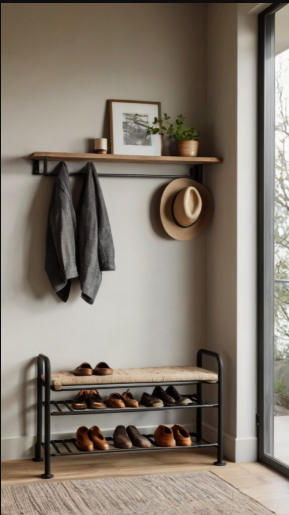 A foldable coat rack is a perfect solution for compact entryways where every inch counts. When not in use, simply fold it up and tuck it away to free up valuable space. Available in a range of styles—from sleek wooden designs to industrial metal options—these racks offer a convenient spot for coats, hats, and bags without creating clutter. This flexible piece lets you adapt your entryway layout whenever you need.