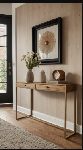A console table is a stylish and practical addition to any small entryway. Position a narrow table along the wall to hold everyday essentials like keys, mail, and sunglasses. To elevate the look, decorate the surface with a vase, a small lamp, or a potted plant. This simple piece not only adds visual appeal but also provides a convenient spot to keep your entryway organized and clutter-free.