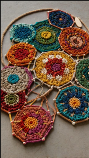 • Recycled materials (e.g., bottle caps, old keys, broken jewelry)