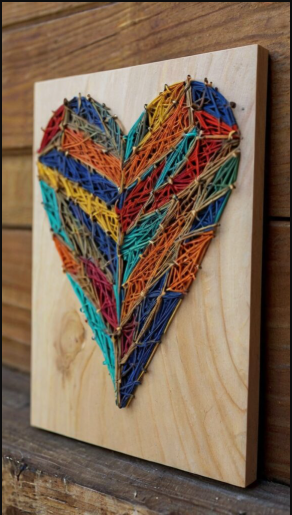 4. Thread the String: Tie one end of your string or embroidery floss to a starting nail, then weave it around the other nails to form your design. Experiment with different colors or layering techniques for added visual interest.