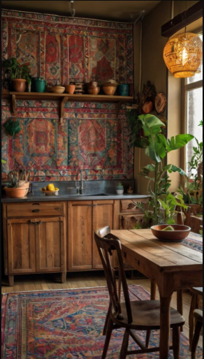 Textiles are a wonderful way to introduce warmth and texture to your kitchen. Hang a tapestry, woven wall piece, or embroidered artwork to create visual interest. They work especially well in rustic, bohemian, or eclectic kitchen styles.