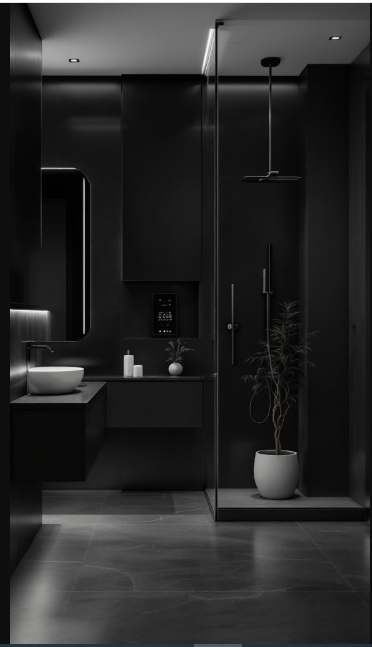 In today’s modern black bathroom, technology and style work hand in hand to create a space that’s both functional and visually striking. The bold black finishes set a dramatic tone, while smart features elevate comfort and convenience.