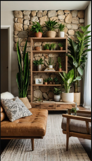 Add life and vibrancy to your space with indoor plants. Choose low-maintenance varieties like snake plants, pothos, or peace lilies that thrive indoors with minimal care. Arrange them on shelves, side tables, or in floor pots to create layers of greenery that enhance both the air quality and the visual appeal of your living room.