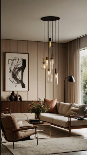 Furniture: Choose a sleek, modern sofa paired with a mid-century inspired coffee table and contemporary armchairs to balance comfort and style.