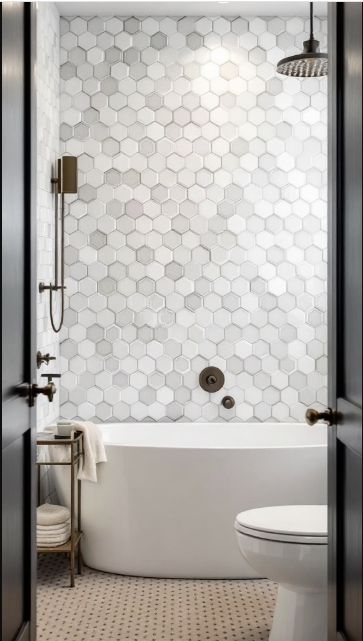 Accent walls are a fantastic way to add personality to your bathroom. Choosing tiles with unique shapes, like hexagons, can turn a simple wall into a stunning focal point. The image above showcases a beautiful hexagonal tile pattern that immediately draws the eye.
