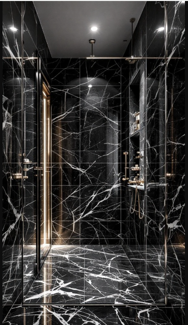 When planning a shower design, consider how materials and colors shape the atmosphere. Black and white marble remains a timeless choice—versatile enough to suit a variety of styles, yet always delivering a chic, enduring look.