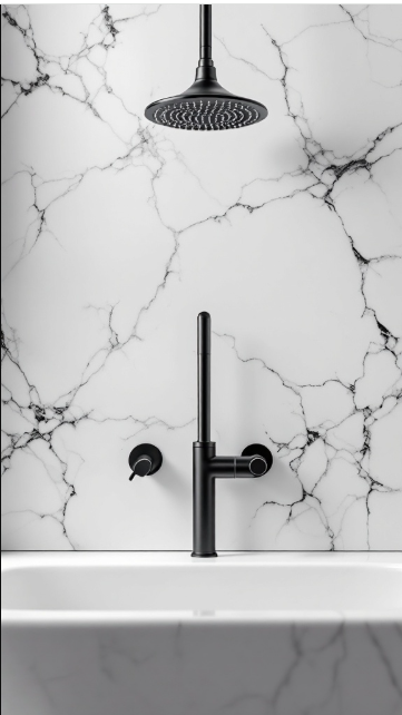 Bold black fixtures can instantly elevate a bathroom, bringing a sense of drama and sophistication to the space. A sleek black showerhead and faucet against crisp white marble create a striking contrast that feels both modern and timeless.