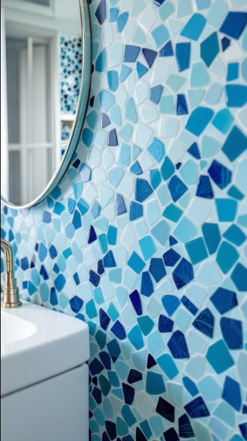 Imagine walking into a bathroom that instantly transports you to the coast—a serene retreat inspired by the ocean. Mosaic accents in layered shades of blue can bring this vision to life, mimicking the ebb and flow of the sea.