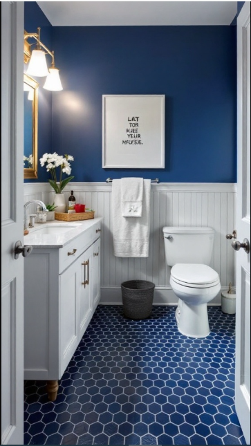 A cobalt blue accent wall can instantly transform a bathroom into a vibrant, refreshing retreat. This bold shade adds energy to the space while still evoking a sense of calm.