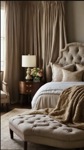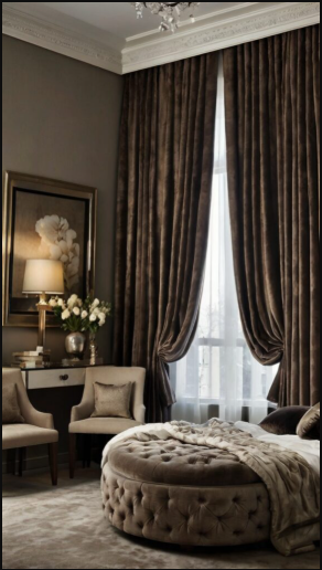 Floor-to-ceiling curtains are a beautiful way to bring a sense of grandeur and sophistication to your bedroom. Their long, flowing design adds a touch of luxury and can make even a small room feel taller and more open. Choosing a striking fabric or rich color enhances the overall aesthetic, giving your space a polished, designer-inspired look.