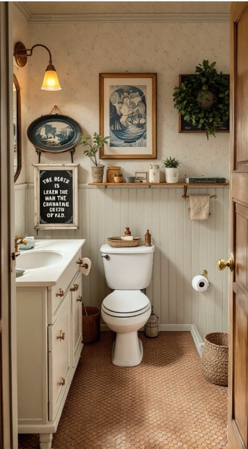 To make the space even cozier, consider adding details such as a woven basket or plush towels that complement the color scheme. These thoughtful touches enhance both style and function, creating a guest bathroom that feels equally comfortable and refined.