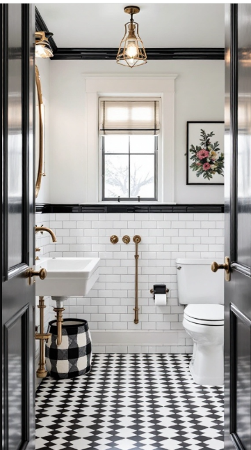 A black and white checkerboard floor instantly brings charm and personality to a guest bathroom. This timeless pattern not only makes a bold style statement but also adds a playful, welcoming vibe that guests are sure to enjoy. The high-contrast design can even make the space feel larger and more open.