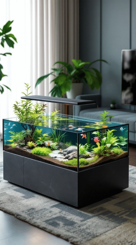 Incorporating an aquarium into your living space—especially as a coffee table—adds a unique and captivating touch to your home décor. As seen in the image, a low-profile aquarium coffee table blends effortlessly with surrounding furniture, offering both functionality and visual appeal.