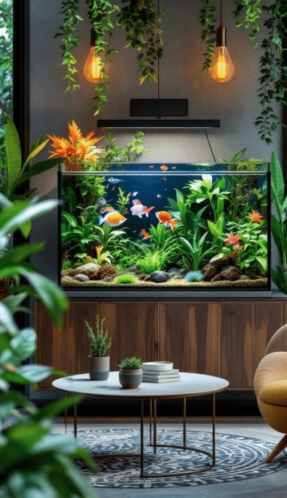Lighting is another key element. Soft, warm lighting creates a soothing atmosphere, while well-placed LED lights can showcase your aquarium, making it the focal point of the room. Don’t hesitate to experiment with different lighting setups until you find the perfect balance that suits your style and space.