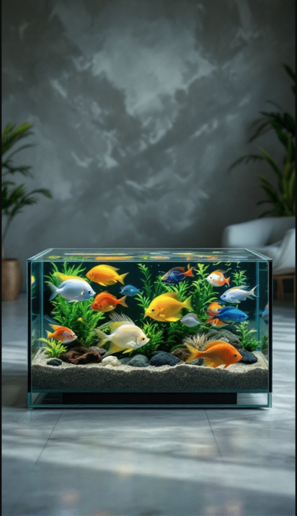 Adding natural elements like aquatic plants, rocks, and driftwood helps foster a connection to nature—especially valuable in urban environments where access to greenery may be limited. This living display brings a slice of the underwater world indoors, offering both beauty and a sense of balance.