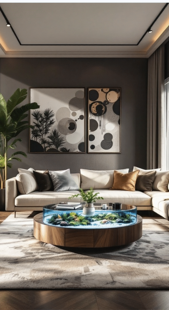 Low-profile aquarium coffee tables bring a fresh twist to home decor. Instead of the traditional coffee table, this unique piece combines functionality with a beautiful aquatic display. It’s a conversation starter and a stunning focal point for any living space.
