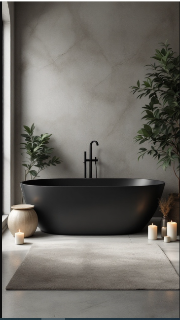 A freestanding bathtub instantly elevates a bathroom into a serene, stylish retreat. In a luxury black design, the sleek, deep tones of the tub create a stunning focal point against softer, neutral surroundings, making it the centerpiece of the space.