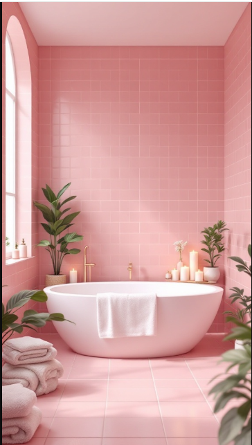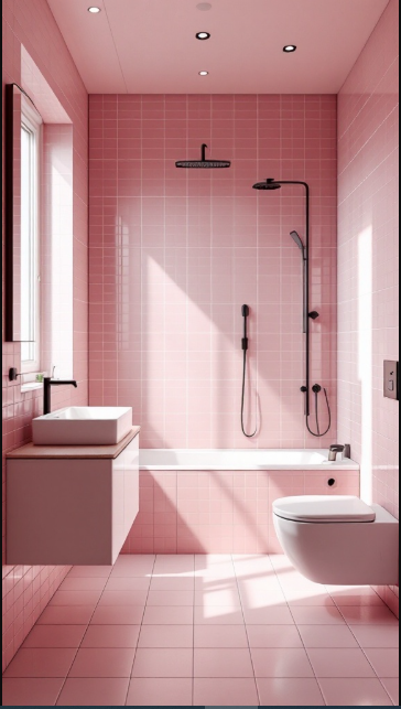 In a modern minimalist bathroom, pink tiles can bring warmth and character without disrupting the clean aesthetic. Their soft hue adds a sense of calm, making the space feel both inviting and serene.