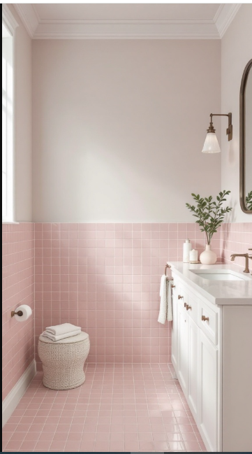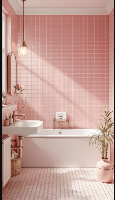 Picture a bathroom designed as your own private retreat. The soft blush of vintage pink tiles sets a warm, inviting tone, instantly evoking the calm of a spa. Gentle and uplifting, the color creates the perfect backdrop for unwinding in peace.
