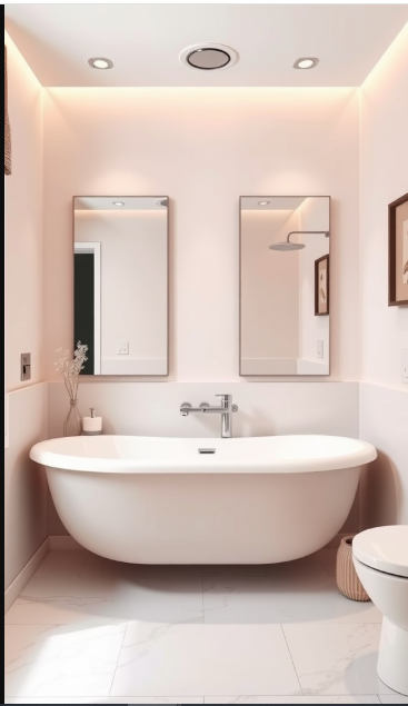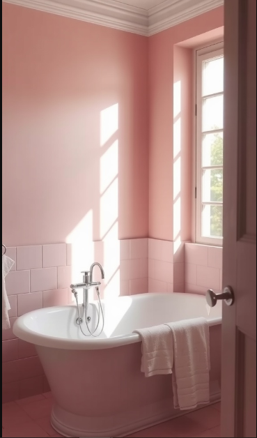 Soft pink tones can turn a bathroom into a true sanctuary. Their gentle hues create a calming backdrop, making the space ideal for unwinding at the end of the day.