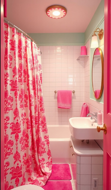 To carry the theme further, incorporate colorful towels or quirky bath products. Mixing different shades of pink with pastels or patterned accessories can amplify the playful vibe. It’s all about experimenting and curating a bathroom that feels uniquely you—bright, bold, and full of charm.