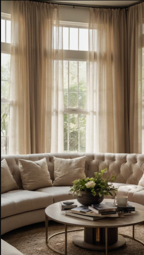 Textured sheer curtains are an elegant way to introduce a touch of luxury to your living room without making it feel heavy or cluttered. Materials like linen, silk, or jacquard add depth and richness, creating a space that feels both refined and comfortable. Their texture interacts beautifully with natural light, casting soft, dynamic shadows throughout the day.