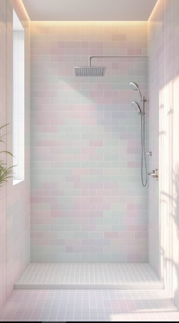 Soft pastel tiles can turn your bathroom shower into a calming sanctuary. Gentle shades of pink, blue, and mint introduce a sense of freshness and tranquility, making your daily routine feel like a moment of retreat.