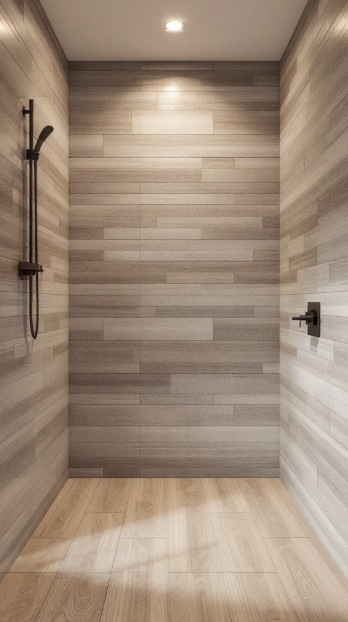 Wood-look porcelain tiles bring both style and practicality to bathroom showers. Designed to capture the warmth and texture of natural wood, they offer the durability of porcelain—meaning you can enjoy the beauty of wood without the worry of water damage.