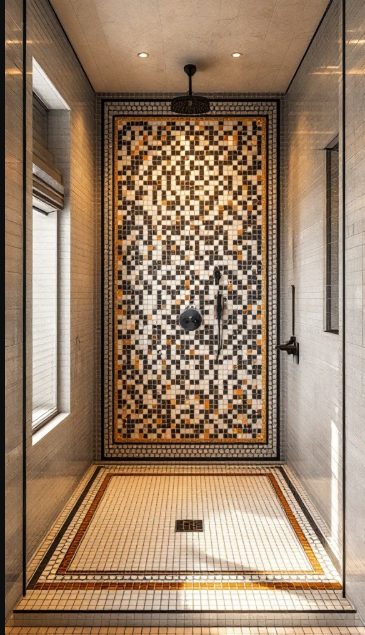 The beauty of mosaics lies in their versatility. Bold, bright hues can energize the space, while softer tones set a calming, spa-like mood. The combination of shapes and sizes adds texture and depth, making even compact showers feel more open and dynamic.