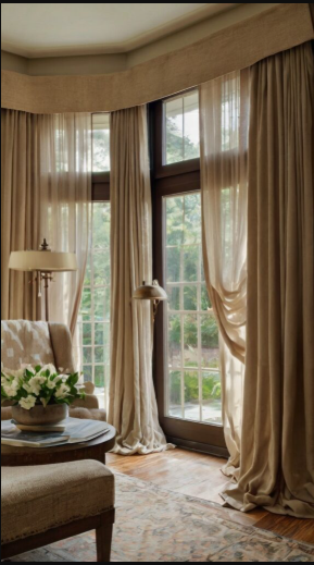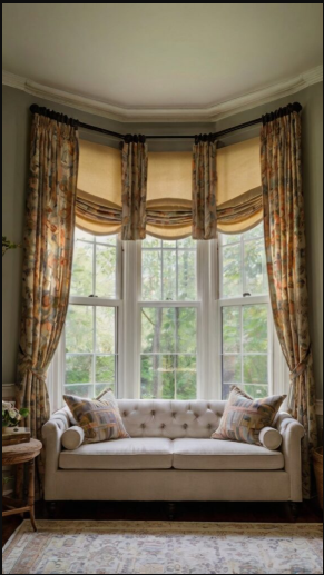 Layering curtains is an excellent way to bring depth and texture to your bay window while giving you greater control over light and privacy. By mixing different fabrics or styles, you can achieve a look that’s both elegant and versatile.
