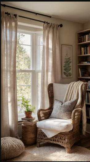 When styling your reading nook, consider how the curtains blend with your furniture and color scheme. Warm, neutral tones help create a soothing and welcoming feel, while bold patterns or rich hues can infuse the space with personality and flair. The key is to design a nook that feels both cozy and creatively inspiring.
