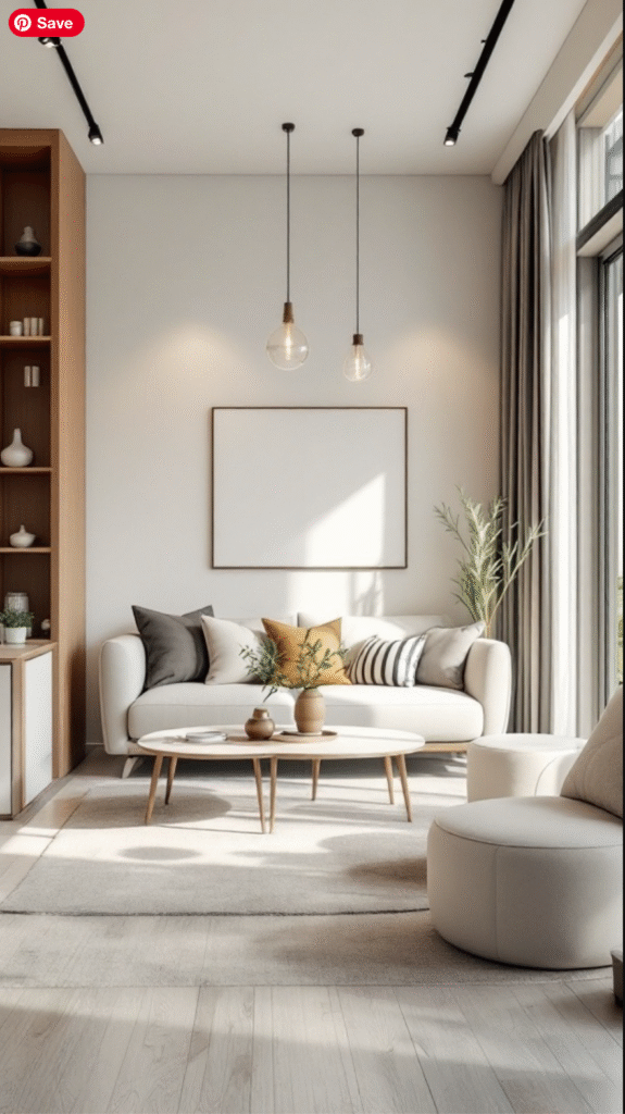 The right lighting can also reflect your personality. Whether you prefer industrial-inspired designs or softer, organic shapes, your fixtures can beautifully complement your decor. In this example, the clean lines of the lights contrast with the soft textures of the furniture, creating a balanced, harmonious atmosphere.