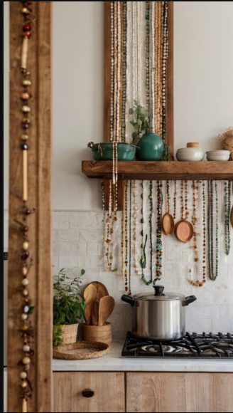 A wooden bead garland brings playful texture and charm to your wall décor. Drape it over a window frame, open shelving, or a mirror for a subtle yet stylish touch. Opt for unfinished wood to emphasize a raw, natural, and handcrafted boho aesthetic.