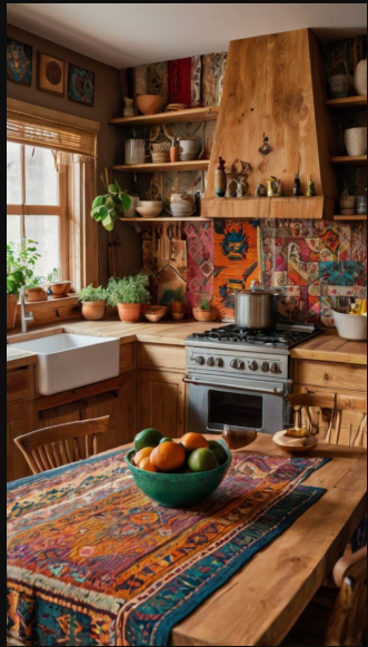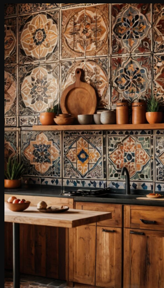 Create a striking feature wall by installing colorful Moroccan or boho-patterned tiles. Their intricate designs and earthy tones capture the boho aesthetic perfectly. Place them behind open shelves or around the stove to instantly add character and charm to your kitchen.