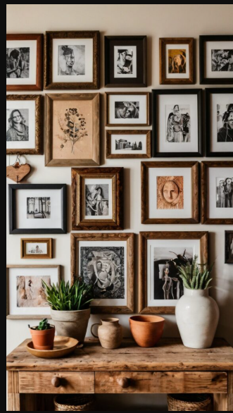 Build a gallery wall using a mix of mismatched frames featuring art, quotes, and sketches. Incorporate boho-inspired motifs such as feathers, florals, or abstract designs, and layer textures by combining canvas, paper, and fabric. The result is a curated, personal display brimming with charm and character.