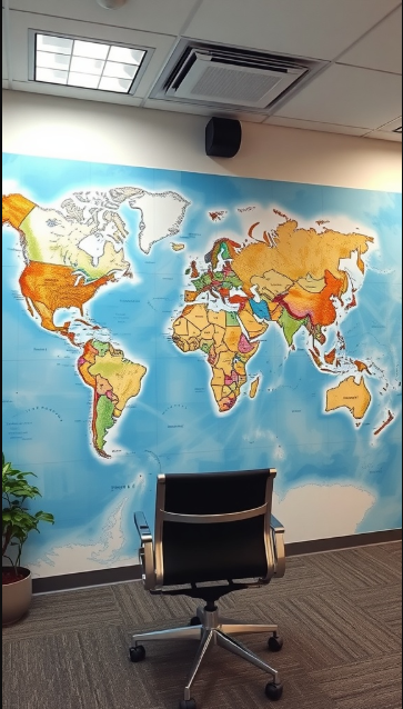 Such a mural can also spark conversations among colleagues, inviting discussions about travel, cultures, and international projects. Every glance at the map can evoke personal memories or dreams of exploring new destinations.