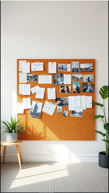 To make your display more dynamic, mix different sizes and styles of photos or notes for a layered, creative effect. This transforms a plain wall into an engaging space that reflects your personality and sparks inspiration.