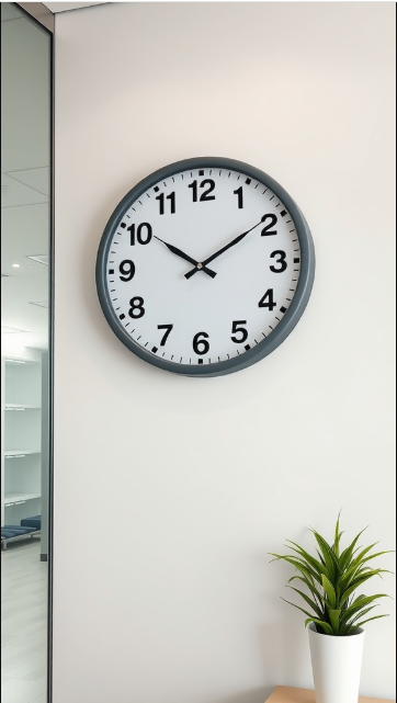 A colorful wall clock can bring both style and function to your office. Beyond keeping time, it adds a vibrant pop of color that enlivens the space. In the image, a simple yet striking clock stands out beautifully against a neutral wall.