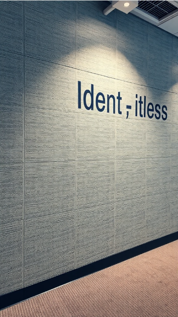 The wall text, “Ident, itless,” adds an extra layer of thoughtfulness to the design. Integrating words or quotes into your panels can make the space feel more personal and aligned with your brand. It’s a simple yet impactful way to inspire creativity while maintaining a professional atmosphere.