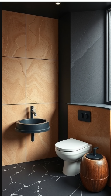 Ceramic and porcelain tiles are a classic choice. They’re durable, water-resistant, and available in a wide range of black and tan designs, making them easy to match with your bathroom’s aesthetic. Their low maintenance makes them perfect for high-moisture areas.