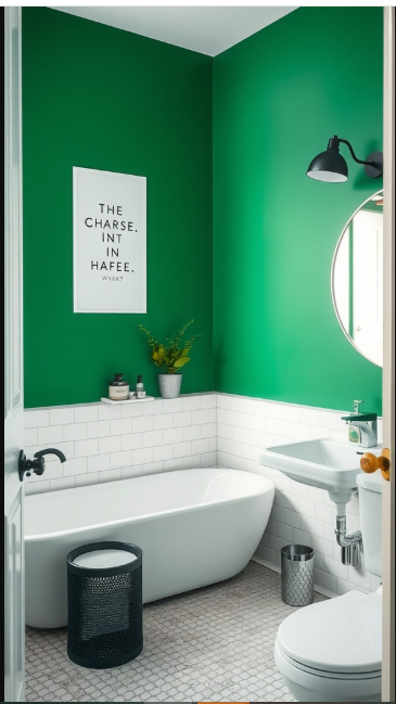 Introducing a bold green into your bathroom can instantly transform it into a vibrant and refreshing retreat. Paired with crisp white accents, the look feels clean, modern, and inviting.