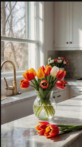 A vase of fresh flowers or a potted plant instantly enlivens your kitchen. Greenery adds a refreshing, natural touch, enhances air quality, and creates a calming atmosphere. Opt for seasonal blooms or low-maintenance plants like succulents for an easy yet striking display.