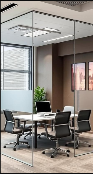Glass partitions offer the perfect balance of openness and privacy, making them ideal for modern office layouts. Choose frosted or tinted glass to add an extra layer of sophistication while maintaining a polished, professional atmosphere.