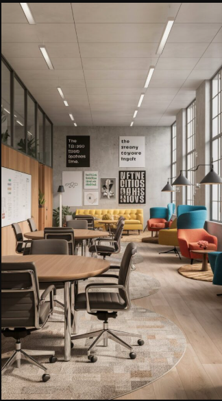 Designate dedicated spaces for team meetings and brainstorming sessions to foster collaboration. Equip them with comfortable seating and whiteboards to support idea sharing, and keep the décor simple yet functional to encourage both productivity and creativity.